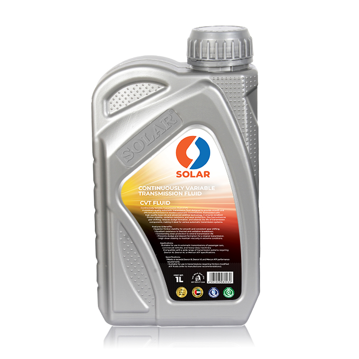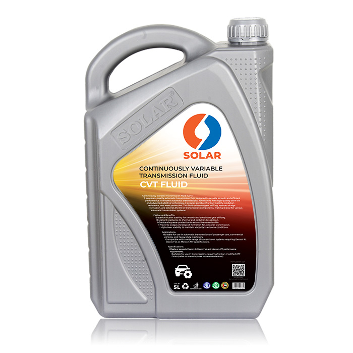 SOLAR CVT FLUID is a premium-quality, fully synthetic transmission fluid specially engineered for modern Continuously Variable Transmissions (CVTs). It provides excellent metal-to-metal friction performance, exceptional wear protection, and superior thermal and oxidation stability. Designed to deliver smooth, uninterrupted power delivery, this fluid ensures quiet operation, extended transmission life, and optimal fuel efficiency.